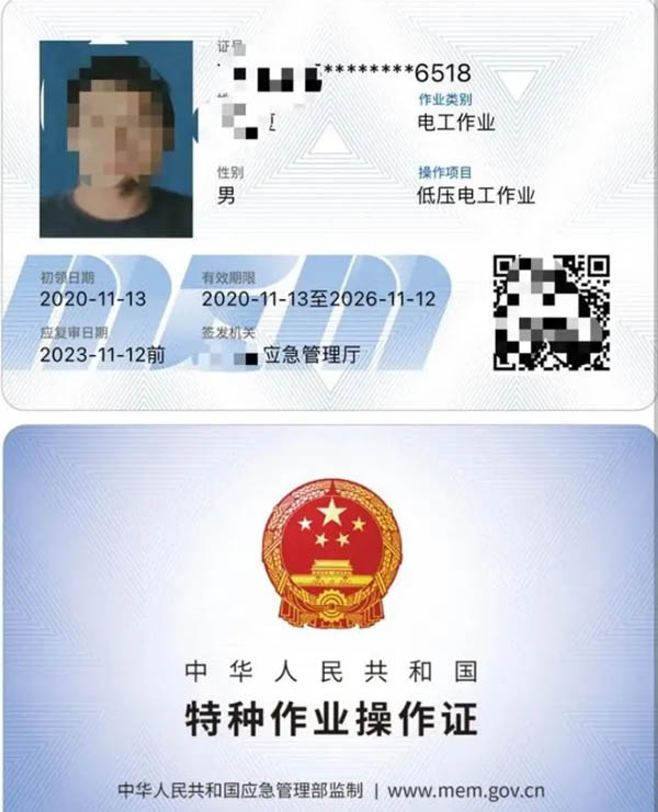 一、應(yīng)急管理廳(原安監(jiān)局)特種操作證俗稱“”上崗證”,證書(shū)每3年進(jìn)行一次復(fù)審、6年換證。常見(jiàn)的低壓電工和高壓電工都是由應(yīng)急管理廳頒發(fā)的。